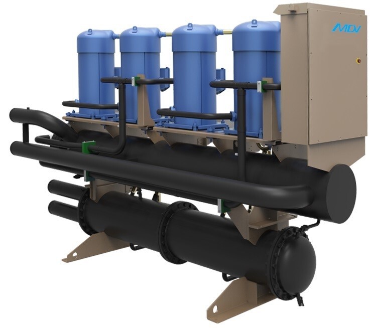 Модульные чиллеры с водяным охлаждением конденсатора от компании MDV серии Aqua Energy (тепло/холод) могут использоваться для кондиционирования производственных помещений, фабрик, гостиниц и так далее. Модели представлены мощностью от 164 до 506 кВт. Оборудование поставляется в корпус (HAB) или в бескорпусном варианте (HA).