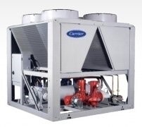 Чиллер Carrier 30RB202 (с воздушным охлаждением конденсатора) комплектуется высокоэффективным спиральным компрессором и новейшим тепловым насосом Aquasnap Puron. С целью улучшения показателей производительности и эффективности функционирования предусмотрено управление системой с нескольких установок «ведущий-ведомый», что минимизирует воздействие человеческого фактора. Композитный материал имеет хорошую устойчивость перед коррозией, именно его используются для изготовления малошумного вентилятора Flying Bird.