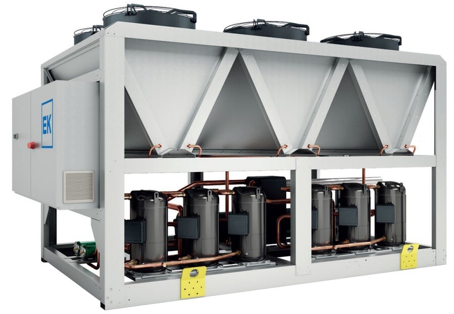 Чиллеры с воздушным охлаждением серии EKCCM/BS от компании Euroklimat разрабатывали специально для использования на открытом воздухе, эти устройства обеспечивают эффективную холодопроизводительность мощностью до 717 кВт в зависимости о модели, в линейке их представлено 11. Все компоненты отвечают европейским требованиям качества и безопасности.