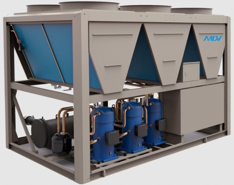 Модульный чиллер с воздушным охлаждением Mdv (ЭмДиВи) RCAG100HA позволяет объединить в одной системе чиллеры суммарной мощностью 3,58 МВт с возможностью равномерного распределения нагрузки спирального компрессора для каждого модуля. Имеет высокий класс энергоэффективности, тем самым отличается сниженным энергопотреблением.