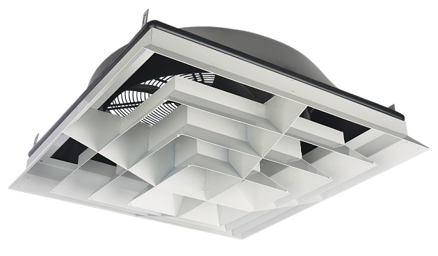 Анемостат дестратификатора распределяет воздух под углом 80°. Регулирование угла не предусмотрено.