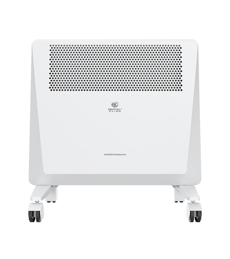ASTORIA Elettronico обладает устойчивой конструкцией на колёсах. Электронная панель управления конвектора расположена на верхней части для комфортного и удобного использования. Возможна установка прибора на стену, все необходимое уже входит в комплектацию.