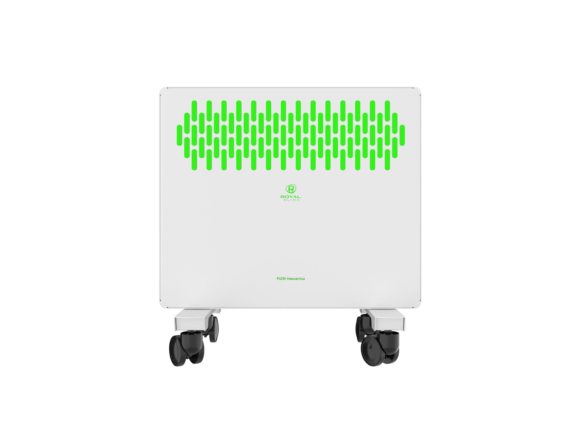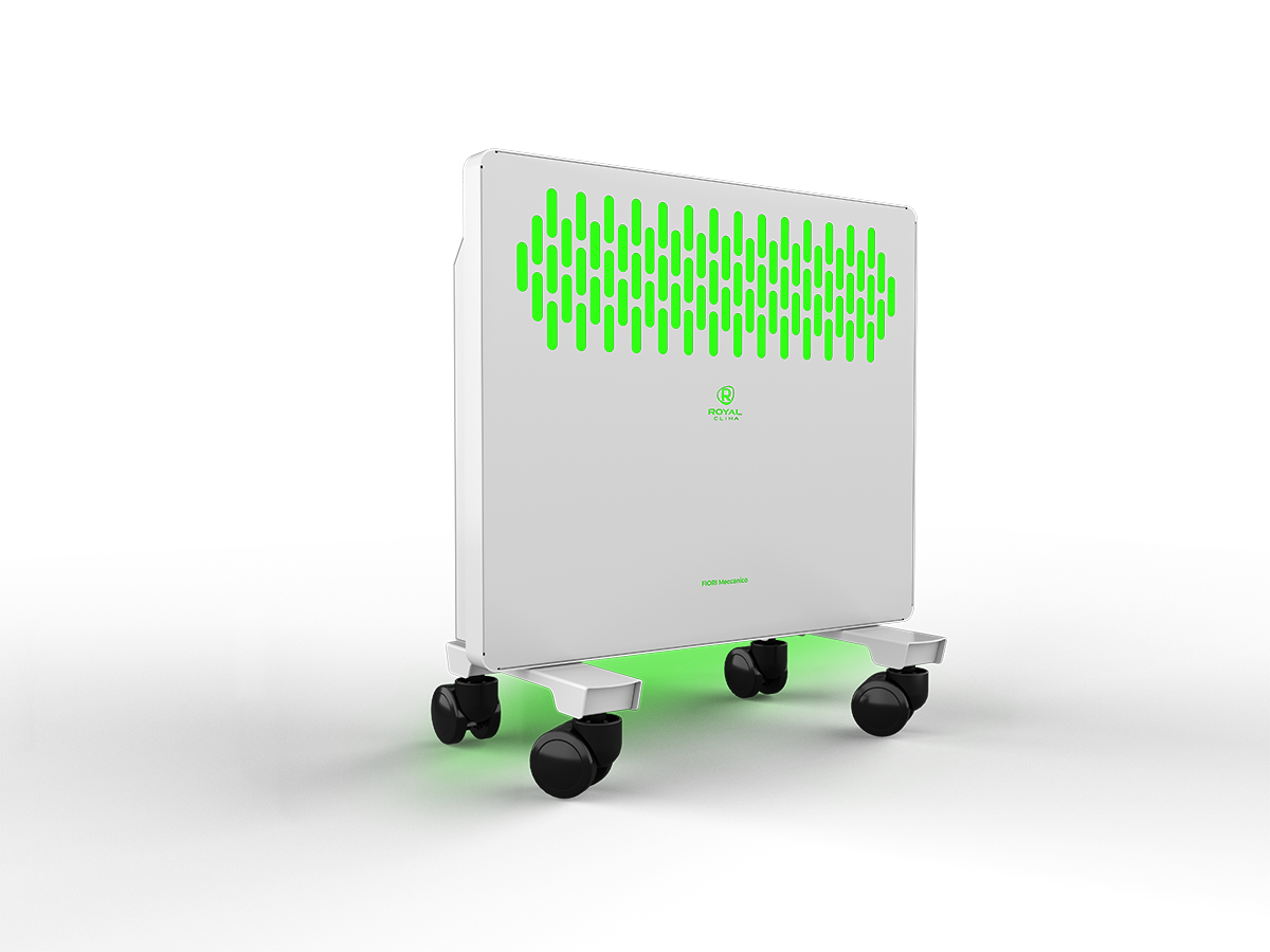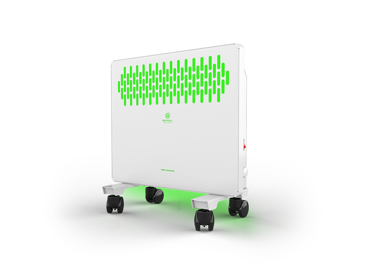 FIORI Meccanico обладает устойчивой конструкцией на колёсах. Механическая панель управления конвектора расположена на боковой части для комфортного и удобного использования. Возможна установка прибора на стену, все необходимое уже входит в комплектацию.