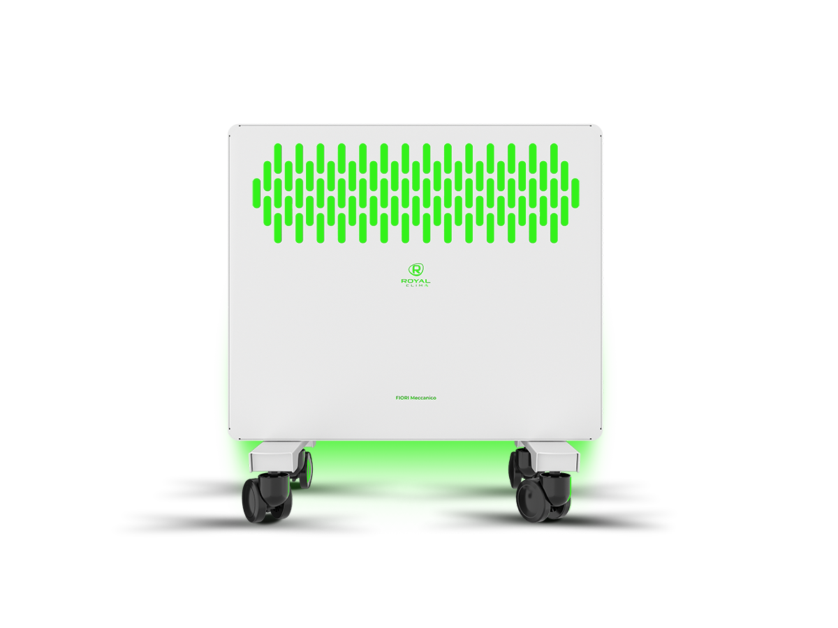FIORI Meccanico обладает устойчивой конструкцией на колёсах. Механическая панель управления конвектора расположена на боковой части для комфортного и удобного использования. Возможна установка прибора на стену, все необходимое уже входит в комплектацию.