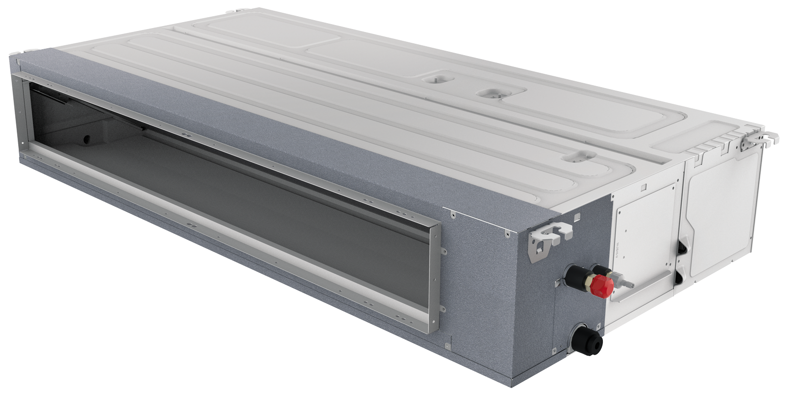 - К внутреннему блоку подключаются воздуховоды, по которым подготовленный воздух (охлажденный или нагретый) распределяется по нескольким помещениям через декоративные решетки в потолке или стенах.