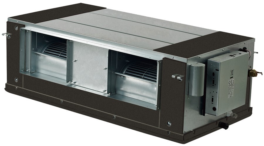 Серия внутренних канальных блоков B от британского производителя Dantex состоит из 12 моделей с холодопроизводительностью от 7.1 до 56 кВт. Все блоки оснащены ЕРВ, воздушным фильтром, вентилятором и дренажной помпой, что делает их работу стабильной, эффективной и малошумной. В качестве хладагента используется фреон R410A.