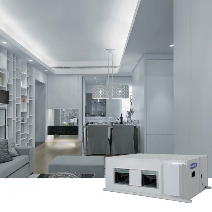 Внутренний канальный блок Gree (Гри) GMV-NDX125P/A-T, работающий под высоконапорным статическим давлением с распределением как нагретого или охлажденного, так и приточного свежего воздуха по одному или сразу многим помещениям. Внутренний блок должен быть встроен в потолок или установлен в служебном помещении, чтобы не привлекать к себе внимания.