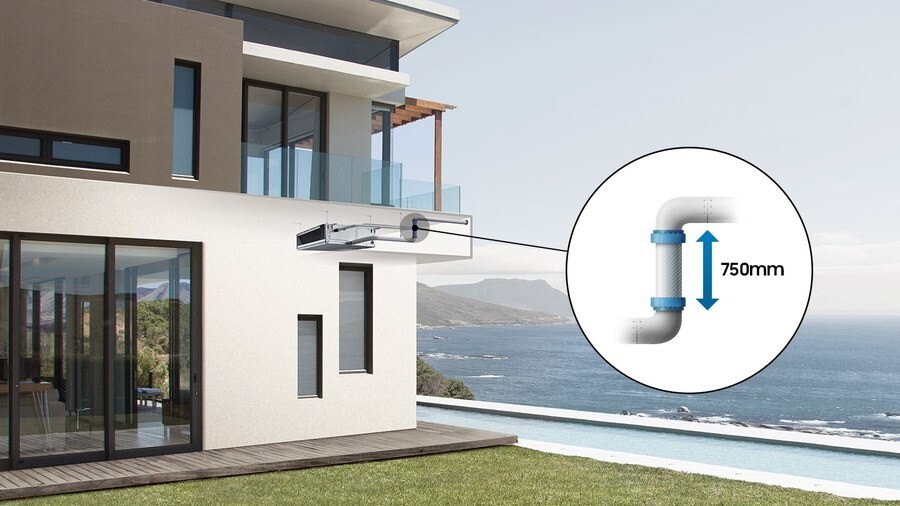 Внутренний блок канальный "Slim" низконапорный Samsung (Самсунг) AM022KNLDEH/TK со встроенным дренажным насосом, который можно установить сбоку, сняв правую боковую панель. Блок легко монтируется и во время работы практически не издаёт шума. Спрятанный в потолке прибор создаёт мощный холодный и тёплый поток воздуха.