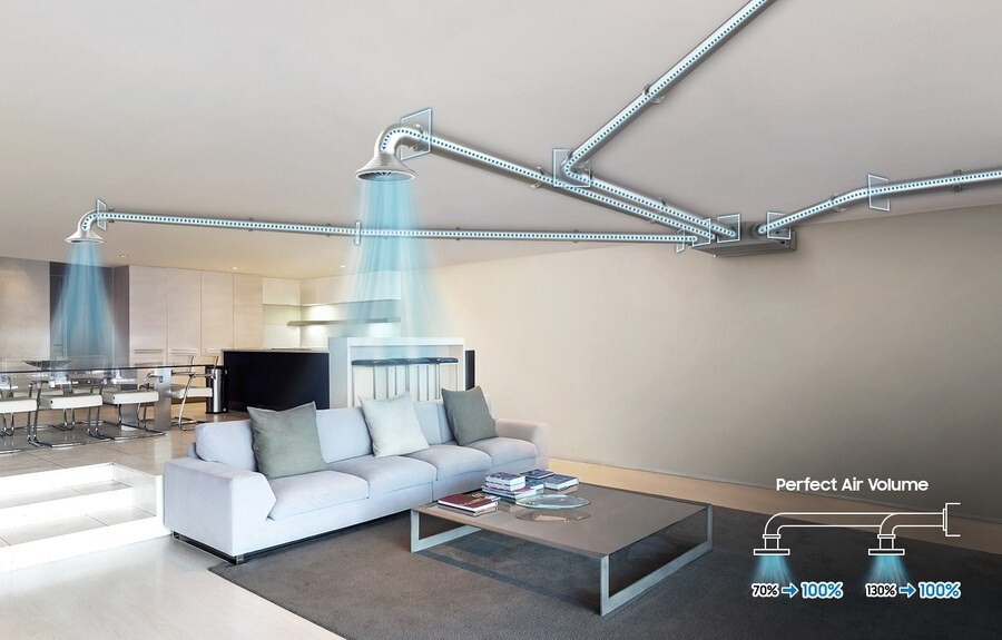 Внутренний блок VRF системы канальной установки, средненапорный Samsung (Самсунг) AM128KNMDEH/TK, помимо охлаждения и обогрева, работает на очистку воздуха. Имеет компактные размеры и очень маленькую толщину. Простой доступ к блоку позволяет экономить время и средства на его облуживание.
