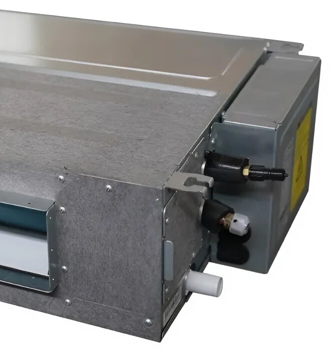 - Один внутренний блок может обслуживать несколько помещений через сеть воздуховодов за счёт высокого внешнего статического давления.