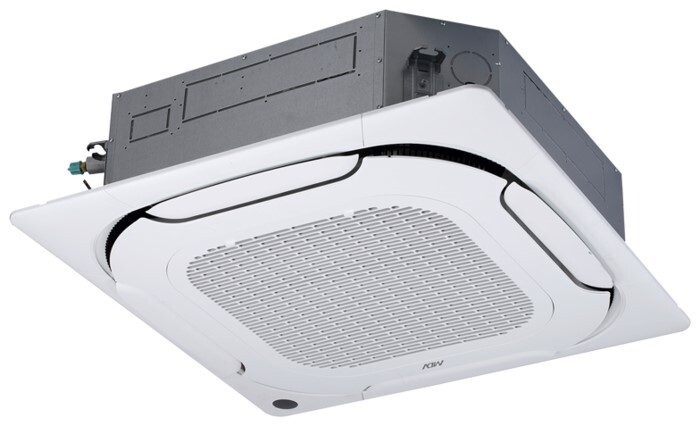 Четырехпоточные внутренние блоки кассетного типа (полноразмерные) с круговым распределением воздуха поколения V6 серии MDI2-Q4DHN1 представлены 10 моделями производительностью от 2,8 до 14,0 кВт. Оборудование широко используются в помещениях с подвесными потолками, например, в магазинах, офисах, школах, конференц-залах и т.д. Все модели оснащены дренажной помпой для отвода конденсата на высоту до 750 мм.