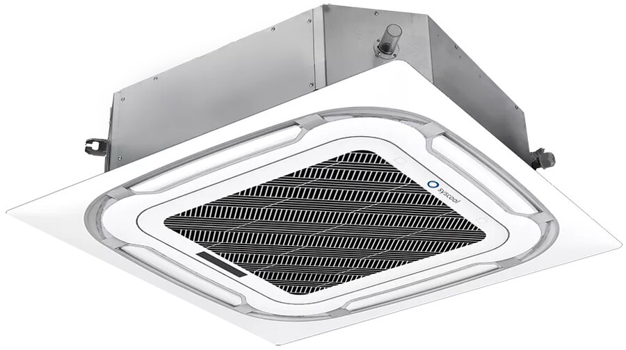 SYSCOOL (Сискул) SYSVRF 3SECASSETTEMINI 28 DQ– это компактный и эргономичный внутренний блок кассетного типа, встраиваемый в VRF-систему. Теплообменник модели обладает гидрофильным покрытием, а вентилятор оснащен DC двигателем высокой мощности. Есть функции авторестарта, приточной вентиляции и интеллектуальной оттайки.