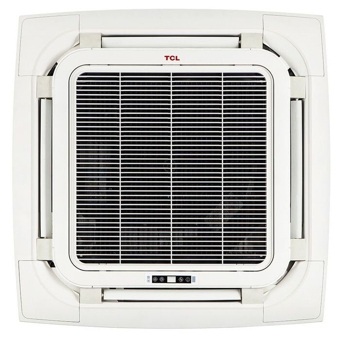 Серию 4-WAY CASSETTE кассетных полноразмерных внутренних блоков китайского производителя TCL можно установить в межпотолочном пространстве потолков подвесного типа. Оригинальность дизайна видимой части блока и дополнительные отверстия по углам фасадной панели является особенностью данного оборудования. Конструктивная особенность создает все условия для равномерного распределения потоков воздуха на 360 градусов. Линейка модельного ряда очень обширна и включает модели производительностью от 2.2 кВт до 8.0 кВт.