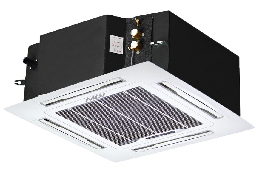 Фанкойлы серии MDKA-V…R/MDV-MBQ4-02C от торговой марки MDV являются кассетными полноразмерными 4-х поточными устройствами, которые поставляются в комплекте с декоративной панелью, воздушным моющимся фильтром, дренажной помпой, ИК-пультом и основным дренажным поддоном. Одним из основных преимуществ этих фанкойлов является использование инверторного двигателя вентилятора, который является эффективным и экономичным в использовании.