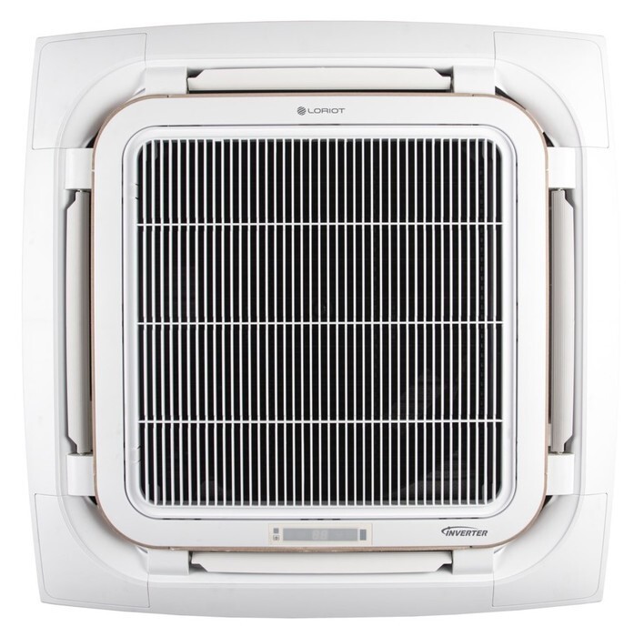 Кондиционер кассетного типа Loriot (Лориот) LCAC-60TCI предназначен для обслуживания больших помещений площадью около 160 кв. метров. Кругопоточная конструкция внутреннего блока обеспечивает равномерное распределение тепла или холода по комнатам, но модель также может работать в режимах вентиляции или осушения.