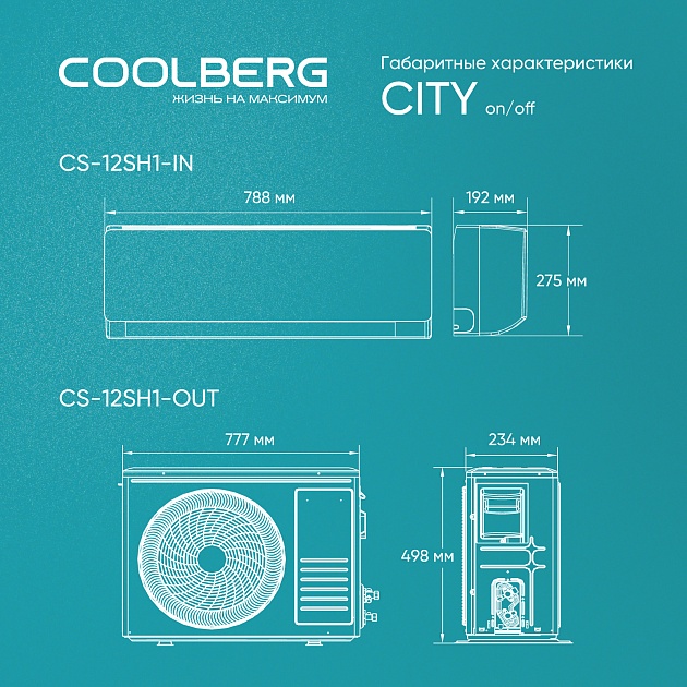 Классическая система кондиционирования СOOLBERG City CS-12SH1-IN/CS-12SH1-OUT купить в Москве и Московской области по доступной цене в пару кликов