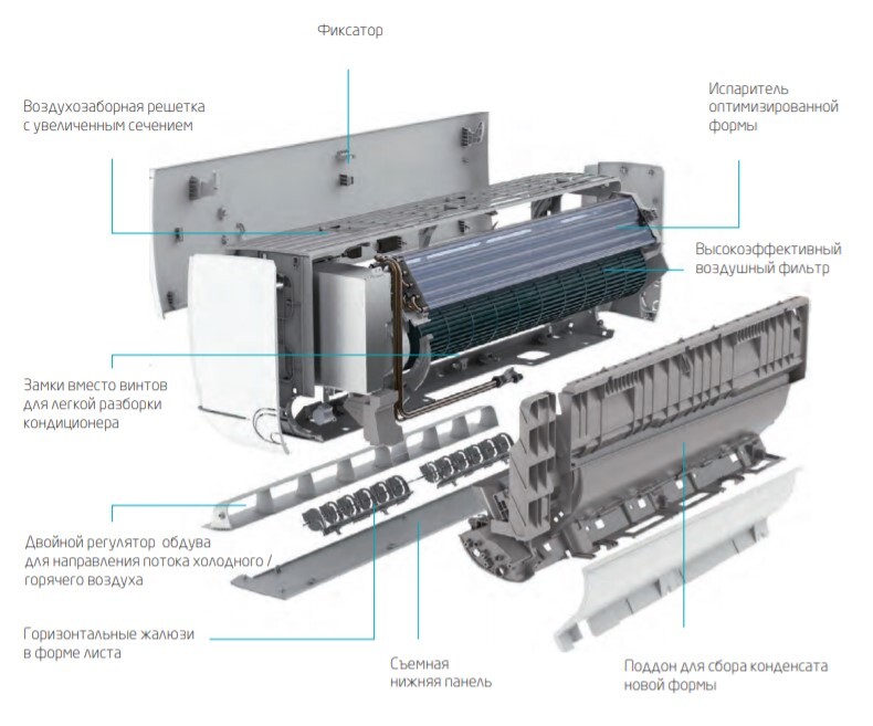 - Режимы работы: охлаждение, обогрев, осушение, вентиляция;