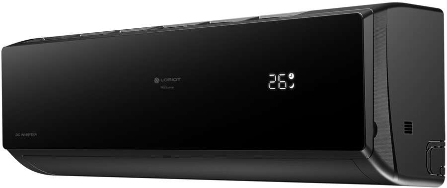 Loriot (Лориот) Nocturne LAC-09TNI – это элегантный настенный кондиционер с черной расцветкой внутреннего блока. Модель имеет усовершенствованную конструкцию, что делает монтаж более гибким (коммуникации могут быть выведены как справа, так и слева). В комплект поставки входит беспроводной пульт ДУ с функцией iFeel.