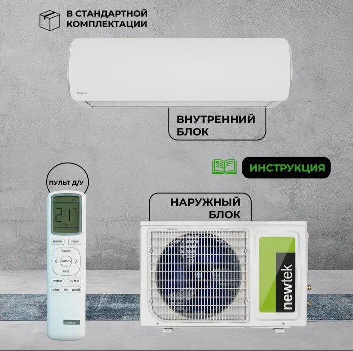 Newtek (Ньютэк) NT-65CHA09 – это настенная бытовая сплит-система, работающая в режимах холод/тепло/вентиляция/осушение. Дренажную трубку можно выводить либо с правой, либо с левой стороны, что облегчает процесс монтажа. К числу рабочих функций относятся автоматический рестарт, самодиагностика, авторазморозка, теплый пуск, турбо, таймер, ночной режим и пр.