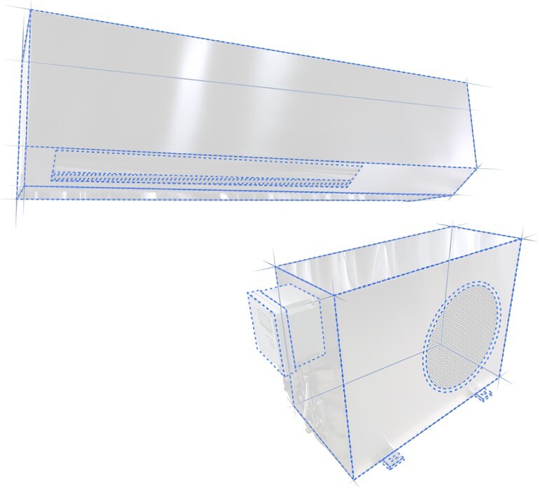 • Наружный и внутренний блоки выполнен в корпусе из нержавеющей стали.