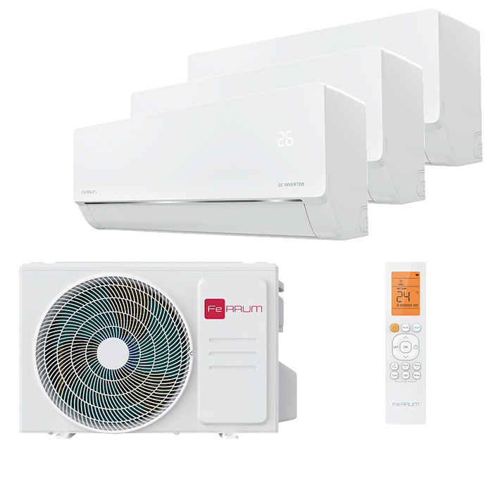 Мультисплит система на 3 комнаты Ferrum FIS07F3_MR2_DC x 3 / FOS24F3_MR2_DC3 купить в Москве и Московской области по доступной цене в пару кликов