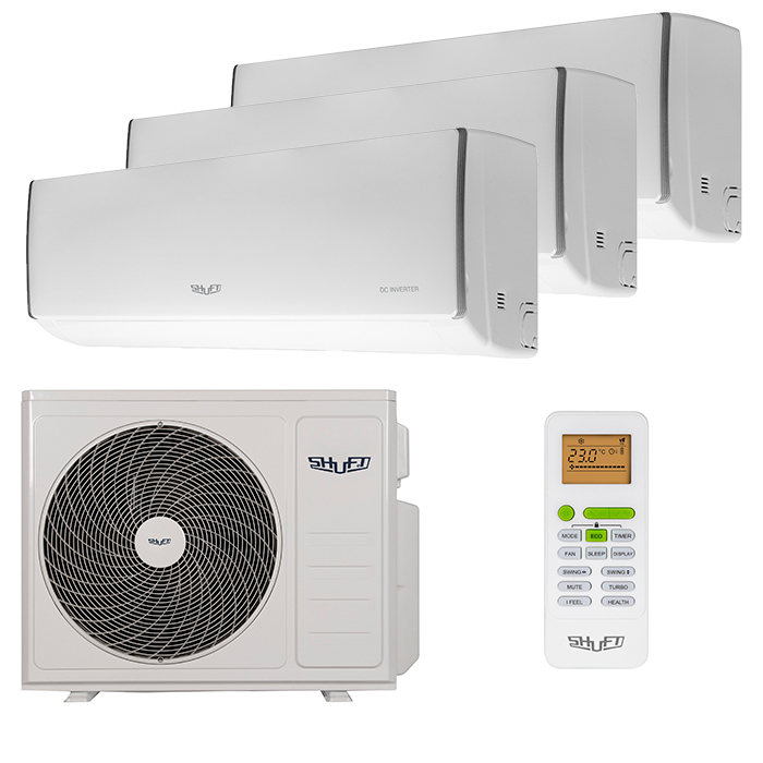 Представляем вам бюджетный вариант для квартиры или частного дома мульти сплит систему Shuft SFMS/I-07 HB FMI/N8/In/white_WF x 3 / SFMO/I-21 FMI-3/N8/Out на комнаты 20 + 20 + 20 кв.м. вы сможете регулировать температуру в каждой комнате отдельно в пределах установленного режима или охлаждения или обогрева. Классический дизайн блока впишется в любой интерьер и не займет много места.