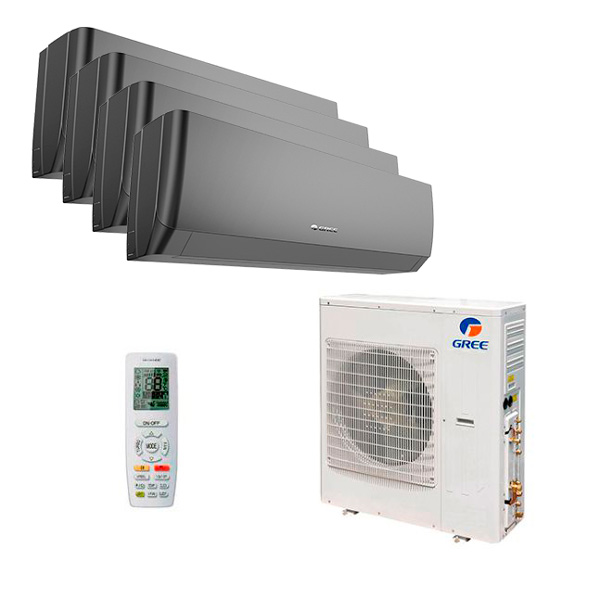 Для большого помещения или многокомнатной квартиры можно использовать не только обычным сплит-системы, но и целый комплект, который будет состоять из 1 наружного блока и нескольких внутренних блоков. Мультисплит система Gree GWH09AGCXB-K6DNA4F/I x 4 / GWHD(36)NK6OO (LCLH) включает в себя 4 настенных блока серии Pular Black и один внешний блок из серии Free Match R32. Управляет каждый из блоков индивидуально в пределах установленного режима: или на обогрев или на охлаждение.