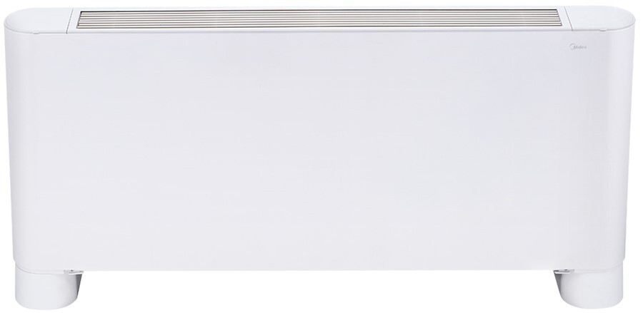 Фанкойл Midea (Мидеа) MKH2-V350F-R4 относится к категории полупромышленного климатического оборудования и предполагает напольную или потолочную установку в зависимости от специфики помещения и желаний потребителя. В корпус внутреннего блока встроены мощный вентилятор, четырехрядный теплообменник, дренажный поддон и воздушный фильтр.