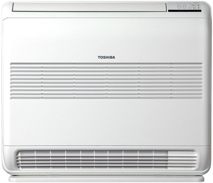 Напольно-потолочные кондиционеры от компании Toshiba отличаются особой конструкцией и соответствующим типом монтажа и при этом воздух может подаваться в помещение через разные отверстия. Внутренние системы контроля отслеживают состояние блоков по внутренним узлам и включает защитные системы. Ассортимент представлен несколькими устройствами с различной мощностью.