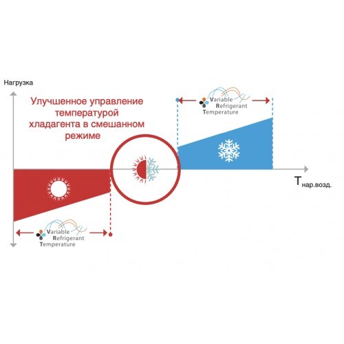 - Расширение рабочего диапазона температур наружного воздуха до -20 °C для круглогодичного охлаждения