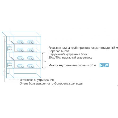 - Сниженный объем используемого хладагента благодаря сокращению длины трассы трубопровода