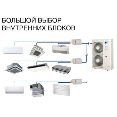 Наружные блоки VRF систем серии RXYSQ-T представлены моделями мощностью от 12,1 до 33,5 кВт. В одной системе может быть использовано более 20 внутренних блоков, что позволяет обслуживать самые разнообразные объекты. К наружным блокам можно подключать внутренние блоки VRV, либо через BP–адаптеры блоки серии: Emura, Nexura и другие, кроме того, возможно подключение вентиляционных установок и секции непосредственного охлаждения приточной установки.