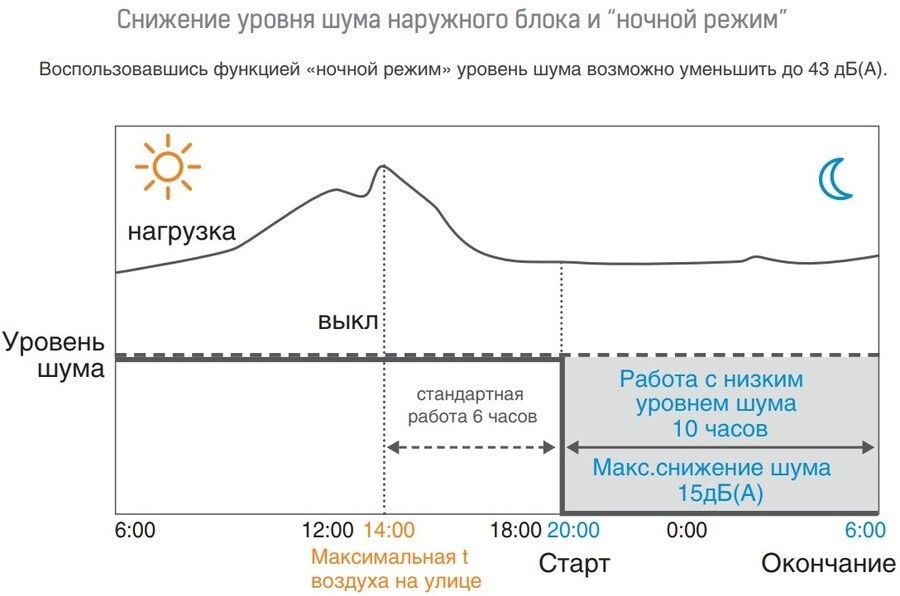 - Снижение уровня шума наружного блока: крыльчатка увеличенного размера