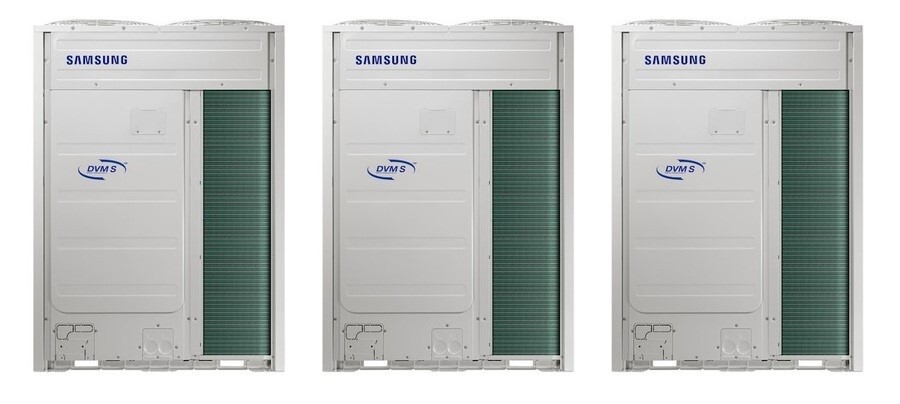SUPER DVM S Samsung - это обновленная линейка мультизональных систем кондиционирования воздуха для охлаждения и обогрева больших площадей. Многозонная система кондиционирования воздуха обеспечивает исключительную эффективность и надежность. В новом модельном ряду серии представлены модели мощностью до 84 л.с. (30 HP). Свободное сочетание в комбинации четырех наружных блоков позволяет собрать компактную систему кондиционирования с холодопроизводительностью до 335 кВт.
