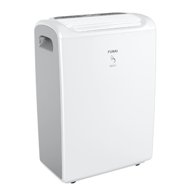 Модели NEKO L с производительностью от 22 до 26 литров в день, имеют функцию сушки одежды, что позволяет их использовать в небольших прачечных, частных банях и саунах. Все модели осушителей FUNAI оснащены традиционными функциями: таймером 1–24 часа, системой настройки скорости обдува, интеллектуальным управлением уровнем влажности воздуха.