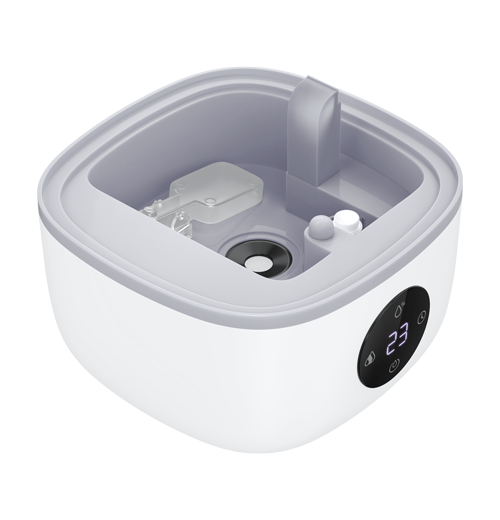 Конструкция увлажнителя воздуха предусматривает верхний залив воды для наполнения резервуара водой без брызг и шума.