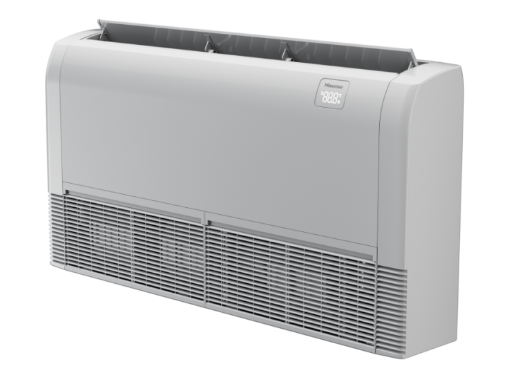 Специальная конструкция жалюзи напольно-потолочного блока Hisense, имеющая внутреннюю воздушную прослойку, позволяет снизить уровень шума выходящего воздуха и гарантировать отсутствие образования конденсата. Несомненно, плюсом станет и то, что напольно-потолочные блоки конструктивно предусматривают возможность организации подачи свежего воздуха в помещение.